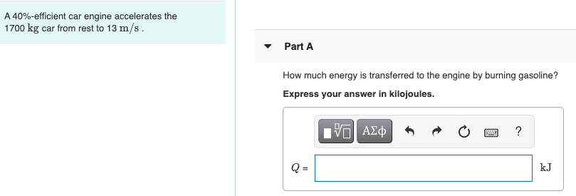 Solved A 40 Efficient Car Engine Accelerates The 1700 Kg Chegg Com